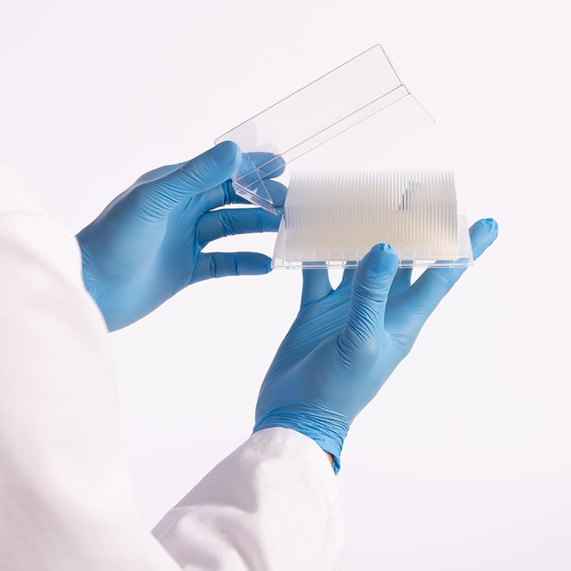 Sensitive molecular reactions like PCR or enzymatic assays benefit from the thermal stability and cleanliness of glass. The PP frame is compatible with automated liquid handling for high-volume lab environments.