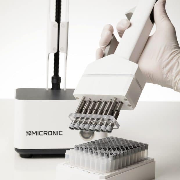Micronic Screw Cap Recapper CS500-serien er udviklet i samarbejde med flere førende laboratorier. Den håndholdte enhed giver brugerne mulighed for at lukke, åbne eller genlukke en række med fire, seks eller otte rør på under 5 sekunder, hvilket minimerer prøvefordampning og forbedrer produktiviteten betydeligt. Derudover sikrer Micronics nye Screw Cap Recappers, at hvert skruelåg bliver sikkert og ensartet tilspændt.